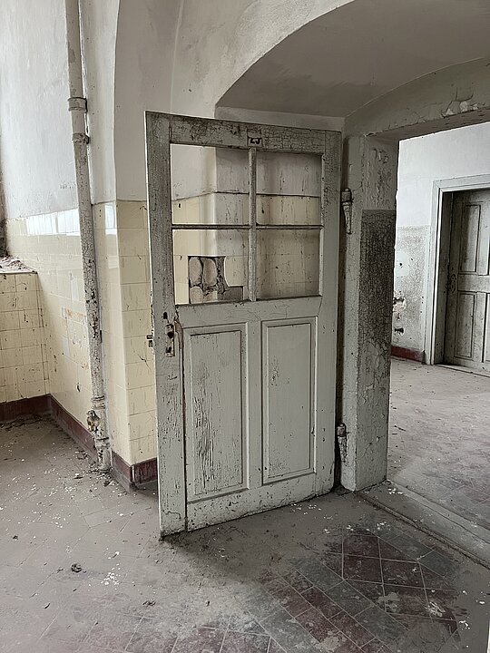 Die mehr als einstündige Führung durch das Gebäude durch Frau Baumgärtner war sehr informativ und aufschlussreich. Beklemmend war zum Schluss die Besichtigung eines unsanierten Gebäudetraktes, der noch den Zustand von 1991 zeigte, bevor das Gebäude als Flüchtlingslager geschlossen wurde.