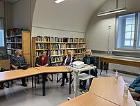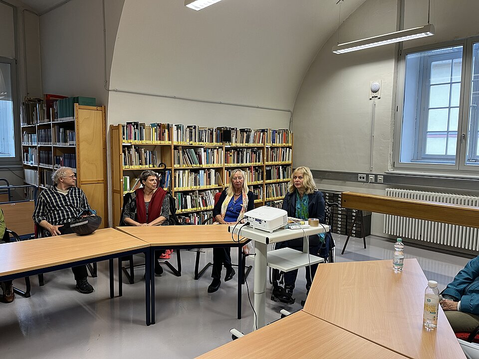 Im Anschluss nach der Führung fand unter Leitung von Frau Ute Kretschmer-Risché, Vorsitzende des Vereins Pro Demokratie Mittelbaden E.V., eine Diskussionsrunde im Bibliothekssaal des Gebäudes statt. Deutlich war die Betroffenheit der Teilnehmer über diese Vergangenheit zu spüren. Auch ein Zeitzeuge von damals, ein ehemaliges Flüchtlingskind, das eine Zeitlang hier untergebracht war, war unter den Teilnehmern.