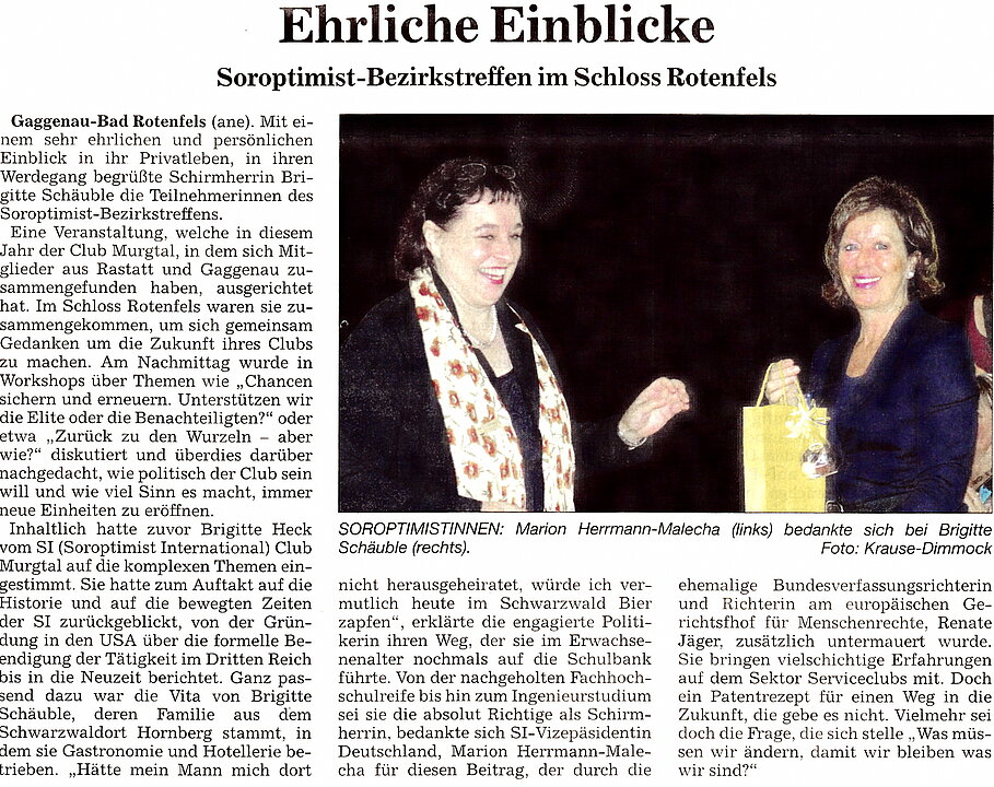 Sorotimist Club Murgtal (Gaggenau/Rastatt) ermöglicht alleinerziehenden Müttern eine Auszeit vom Alltagsgeschehen in einem Workshop, in dem sie ein wenig Zeit für sich selbst, ihre Gedanken und Ideen finden. BNN Nr. 242 vom 18.10.2016